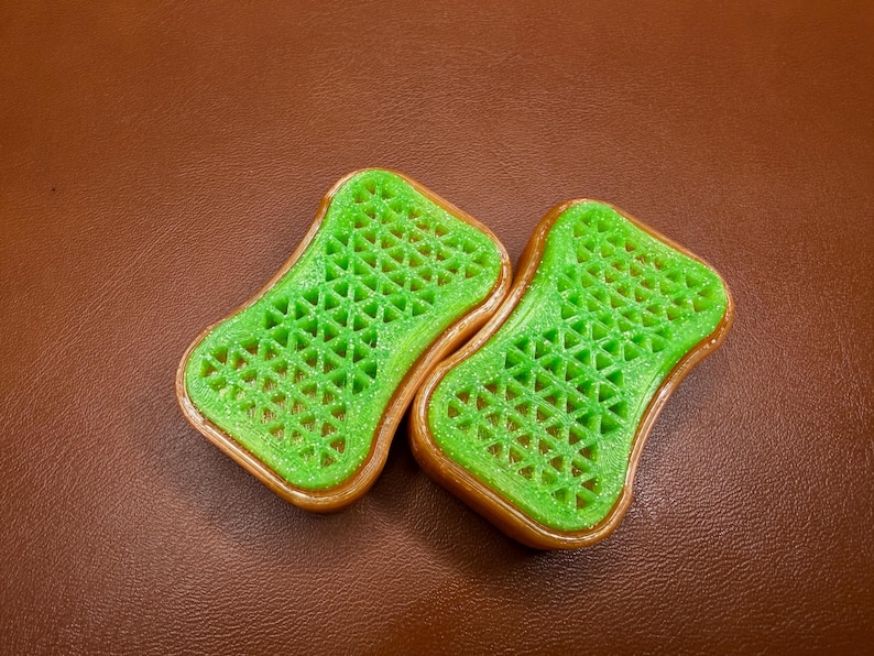 • Composite Filament - Contains Metal and PLA (The heaviest 3D offering). These include Stainless Steel, Copper, Iron, Brass, and Bronze. Each material can impact the play of the slider, Iron specifically is magnetic and can negate much of the crunchiness in a “crunchy” slider.