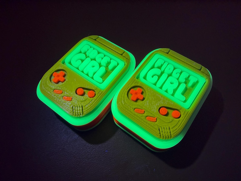 • GITD (Glow In The Dark) - Can be offered in Resin, PLA, PETG, and Nylon. Glow intensity and glow times can vary, sometimes UV light or Blacklight is the only catalyst to make the glow work.