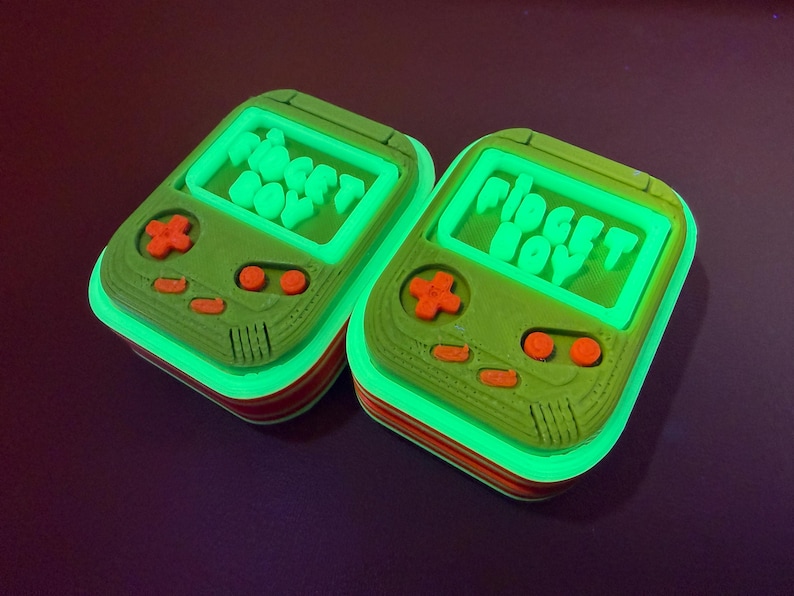 • GITD (Glow In The Dark) - Can be offered in Resin, PLA, PETG, and Nylon. Glow intensity and glow times can vary, sometimes UV light or Blacklight is the only catalyst to make the glow work.