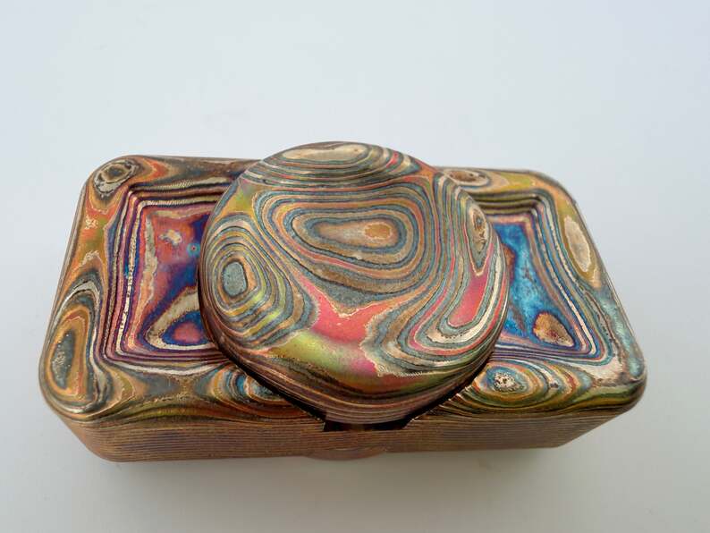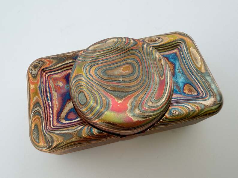 MiniPezz - Mokume with 24.5mm Low Pro Buttons (Etched/Polished then Flamed)